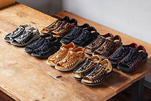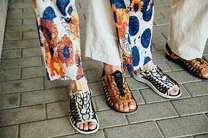 2本のコードと1枚のソールで編み上げられた、キーンを象徴するスニーカー「ユニーク(UNEEK)」シリーズ。今回ラインナップに加わる「ユニーク ツー オーティー」は、つま先部分を開けたオープントゥタイプの新作だ。