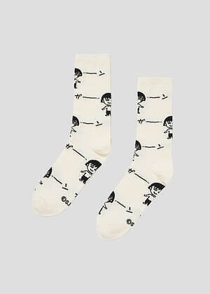 さらに小物類は、まる子のイラスト入りトートバッグのほか、まる子の刺繍が施されたキャップ、カラフルな靴下やアンダーウェア、ともぞうの俳句がプリントされたハンカチなど豊富に取り揃える。