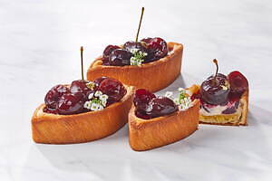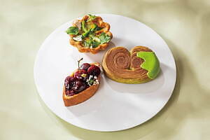 この他、季節の食材を使った新作パンもラインナップ。濃厚な抹茶の味わいと、サクサクとしていて口どけの良い生地がマッチした「抹茶のパルミエ」や、バター香るブリオッシュフィユテ生地に甘酸っぱいダークチェリーを飾った「スリーズ ノワール」、シャキシャキとしたアスパラガスを、コクのあるアパレイユとともに味わえる「アスパラガスとベーコンのキッシュ」などが店頭に並ぶ。