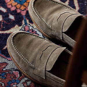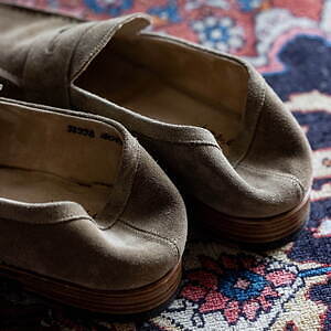 1919年にインドネシアで創業した「ジャランスリウァヤ」と、日本の洋服ブランド・ハラダマニアの別注シューズは、コインローファーがベース。素材や機能をプラスし、ハラダマニアならではの遊び心を加えた。