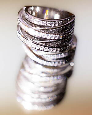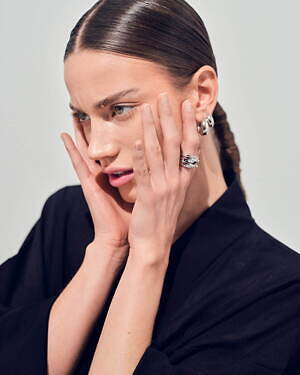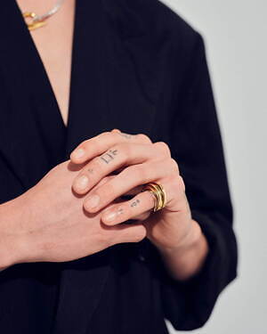 リングは、素材の質感を活かしたミニマムなモデルの他、シルバーとゴールドを組み合わせたモデルや、180個もの煌めくダイヤモンドがあしらわれたゴールドリングなど、豊富なバリエーションを用意する。