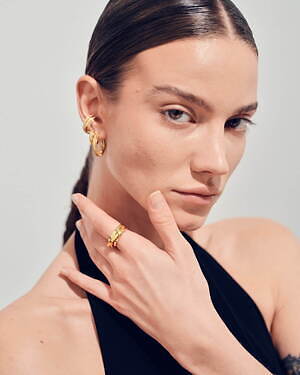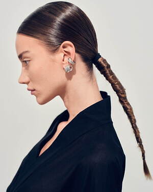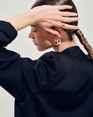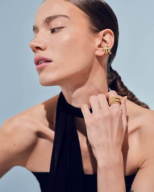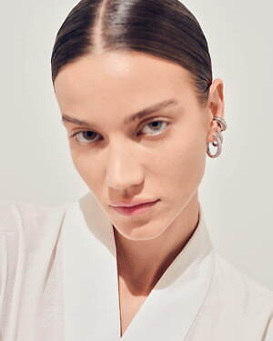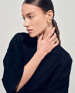 アニバーサリーコレクション第2弾となる今回は、彫刻的かつ曲線的な金属彫刻で知られるフランス人アーティストのベルナール・べネ(Bernar Venet)の作品に着想を得た「オーブ コレクション」が登場。リングやピアス、イヤーカフなど全12種類のジュエリーを展開する。