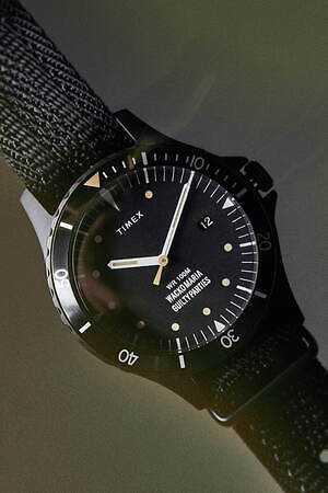 今回のコラボレーションでは、タイメックスのダイバーズウォッチ「ナビ38(Navi 38)」をベースに、ワコマリア、「エンド」がデザインをアレンジ。細かなディテールを変更し、コラボレーションならではのモデルに仕上げた。