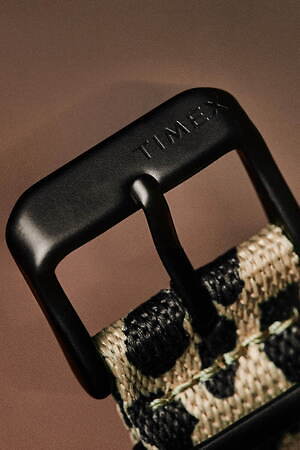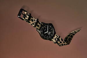 レオパード柄に合わせ、ダイヤルのインデックスや秒針にはベージュを採用。また、センター下部にはワコマリアのブランドロゴを配置している。さらに、「エンド」の頭文字をリュウズに刻印するなど、細部に至るまでこだわり抜いた1本となっている。