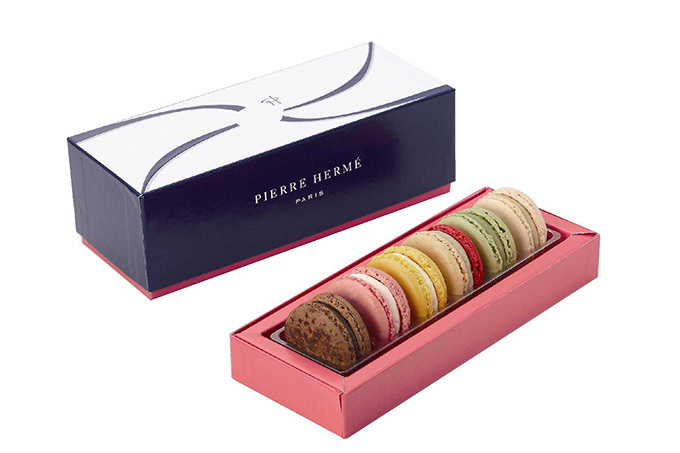 まるで花束のような華やかな見た目が印象的なのはジョトォのケーキ「アニバーサリージョトォ」。ピンクのクリームを花束に見立てている。マカロンが人気のピエール・エルメ・パリは、ShinQs2周年を記念した限定フレーバー入りのマカロンボックスを発売。