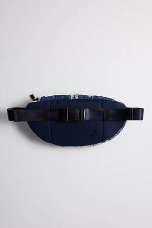 バッグのボディには、ファンダメンタルオリジナルとなる、耐久性の高い肉厚インディゴジャカード生地を使用。使い込むことで経年変化していき、自分だけの表情に仕上げられる。また、フロントには、コラボレーションの証として、両ブランドのパッチをあしらった。