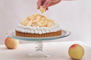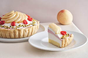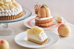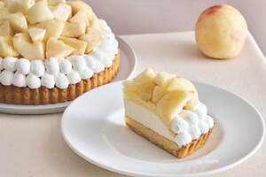 「“岡山白桃”のリッチレアチーズタルト」は、みずみずしい「岡山白桃」をたくさん堪能したい人におすすめ。甘くフレッシュな“ごろごろ”白桃と、ほんのり酸味のあるレアチーズクリームの相性が抜群なタルトに仕上げている。