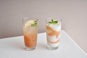 ・“岡山白桃”のピンクティーソーダ 880円