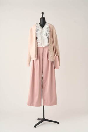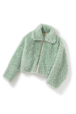 アウターも要チェック。「エコファーリバーシブルブルゾン」は、なめらかなファーをゆったりと丸みのあるシルエットに仕立てた愛らしい一着だ。アイボリーやピンク、ミントなど、フェミニンなシャーベットカラーがリバーシブルで楽しめる。