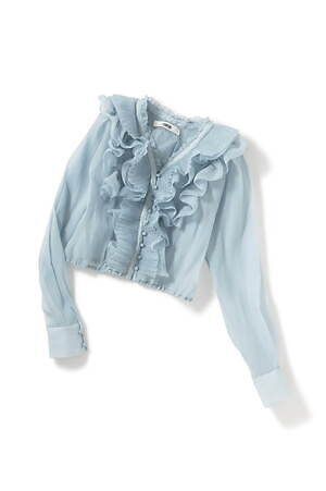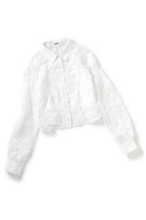 ボリュームがありつつもメリハリのある丈感にこだわったクロップドブラウス。フロッキードット×フラワー柄のテープ刺繍を組み合わせた華やかなレース生地が印象的だ。エレガントなムードを纏うホワイトや、クラシカルなブラックが揃う。
