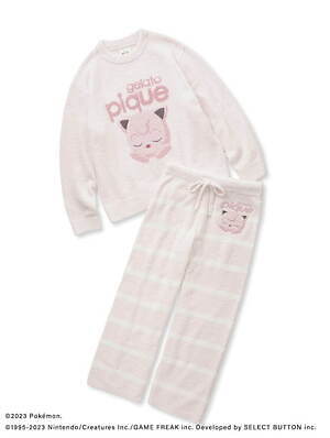 ジャカードニットのシリーズでは、眠っているポケモンをジャカードとさがら刺繡でデザインしたプルオーバーとロングパンツのセットを展開。