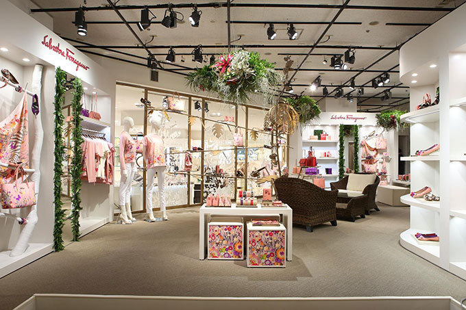 「サヴァンナ」コレクションをイメージし、まるで楽園の様に装飾されたイベントスペースには、バッグ、シューズ、アクセサリーなどがディスプレイされている。他にも洗練されたプリントのツインセットニットやTシャツも、フェラガモのクリエイティビティを印象付けるアイテムとして展開されるので、この機会にフェラガモによるサヴァンナの世界に浸ってみるのはどうだろう。