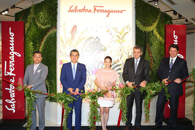 この限定コレクション発売を記念して、発売初日となる4月23日(水)の朝、女優・モデルとして活躍する河北麻友子迎え、オープニングセレモニーを開催。またイタリア本国より、サルヴァトーレ フェラガモ グループの社長フェルッチオ・フェラガモと、その双子の長男で、トスカーナ地方のアグリツウーリズモ 『イル・ボッロ』のディレクターを務める、サルヴァトーレ・フェラガモ、そして三越伊勢丹の代表取締役社長執行役員・大西洋、伊勢丹新宿本店長・鷹野正明がセレモニーに参列し、テープカットを行った。