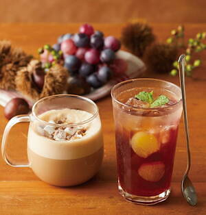 スイーツと合わせてオーダーしたい限定ドリンクは、巨峰とマロンにフィーチャーした2種類がラインナップ。巨峰が香るルイボスティーを使ったジュレをソーダと合わせた「巨峰ルイボスのスパークリングジュレッティー」、イタリア産栗のマロンペーストのコクが広がる「マロンチャイ」は、いずれも秋らしい味わいが楽しめる一杯となっている。