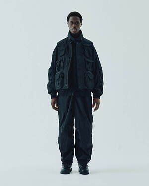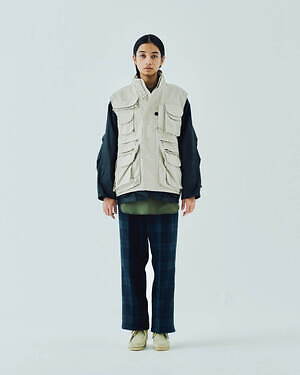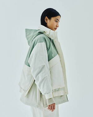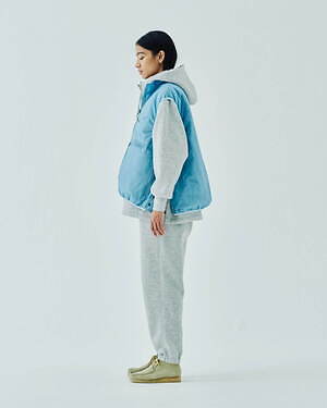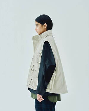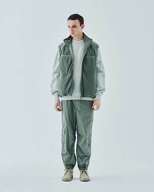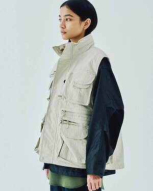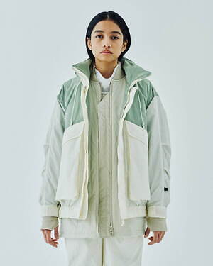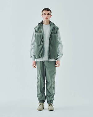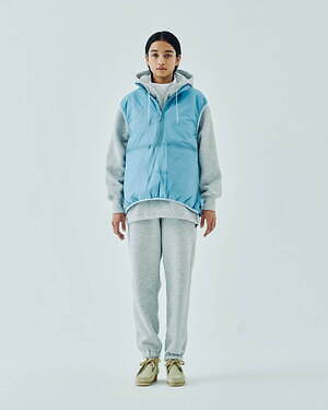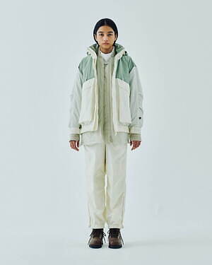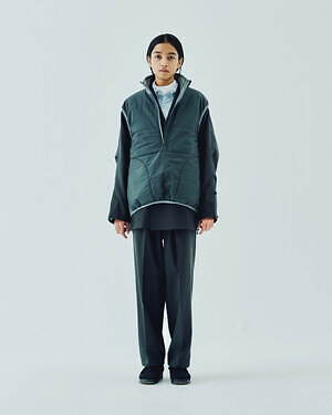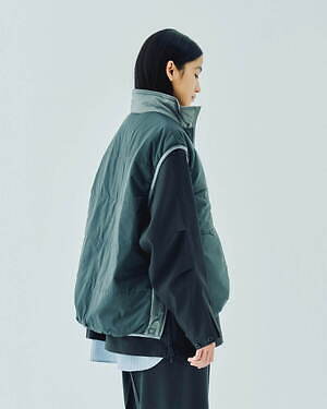 2WAYで楽しめるリバーシブル仕様のジッププルオーバージャケットとベストも用意。1990年代のアイテムを思わせる、素材感やカラーコンビネーションが印象的な中綿入りアウターだ。カラーは、ブラック、グレー、ベージュのベーシックなカラーに加え、鮮やかなピンクも展開される。
