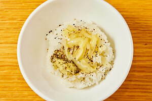 <東京駅 斑鳩>が用意するのは、自家製うにソースにズワイガニを絡め、トリュフオイルの華やかな香りを組み合わせた「ズワイガニとうにのトリュフ薫るまぜそば」。豪華な食材同士が絶妙なハーモニーを奏で、それぞれの旨味を引き立て合っている。東京駅バージョンを頼むと、チャーシュー、煮⽟⼦、穂先メンマ、海苔を増量してくれるのもポイントだ。