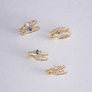 また、重ね付けを楽しめるポケットリングに、新作が仲間入り。オパールやダイヤモンド、アクアマリンなど、様々なストーンを使用しており、自分好みのレイヤードスタイルを作り上げることが可能だ。