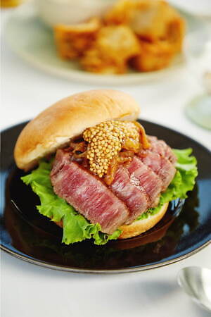 ドリンクを手に入れたら、シェフによる本格的なバーフードでマリアージュ。ブリトーやタコスなどテキサス発祥のメキシコ風料理や和牛のフィレ肉を豪華に乗せたハンバーガーなど、オリジナリティー溢れるフードでワンランク上のひと時を過ごせそう。