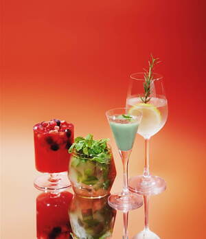 注目のドリンクは、伝統的なスタンダードカクテルから、新鮮なフルーツ&野菜の“素材のうまみ”を引き出したミクソロジーカクテル、曜日・時間帯問わず楽しめるノンアルコールのモクテルまで用意。店名にも用いたミント主役の「オリジナル モヒート」を筆頭に、カラフルでこだわり抜いたカクテルをチョイスできる。