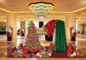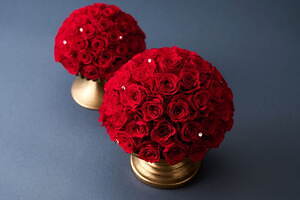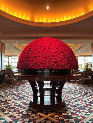 クリスマスシーズンならではの特別な装飾も要チェック。1階の宴会ロビーには、デコラティブなゴールドリースとともに、赤いバラのプリザーブドフラワーを飾り付けたクリスマスツリーを設置。2階のメインロビーでは、「永遠」の花言葉を持つ1001本の赤いバラのプリザーブドフラワーで仕上げたドーム型の装飾を用意する。