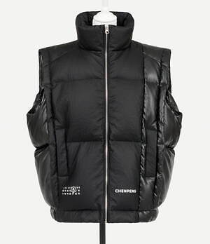 上海を拠点とするデザイナー、ペン・チェンが手掛けるダウンジャケットブランドのチェンペンと、エムエム6 メゾン マルジェラのコラボレーションでは、仕立ての技と実験的なデザインを反映した3型のダウンアウターを展開する。いずれも、オールブラックで仕上げた。
