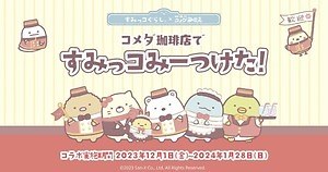 尚、コメダ珈琲店と「すみっコぐらし」のコラボレーションでは、愛らしいパッケージの「すみっコぐらしコメチキクリスマスボックス」やオリジナルクリアカード付き「すみっコぐらしデザインまめがし」も販売。喫茶メニューとあわせて要チェックだ。