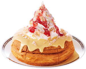 「シロノワール いちごのミルフィーユ」は、“いちごのミルフィーユ”をイメージした限定シロノワール。たっぷりのカスタードソースをかけたほかほかデニッシュに、すっきりとした甘さのソフトクリーム、つぶつぶ果肉のいちごソースをあしらった華やかな1品だ。仕上げにクラッシュしたパイ生地を散りばめ、ミルフィーユのサクサク食感を再現した見た目も味わいも楽しいシロノワールとなっている。