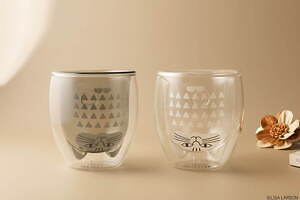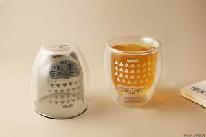 飲み物を注ぐと、内側に描かれたキャラクターが浮かびあがる「グッドグラス」のダブルウォールグラス。今回は、北欧を代表するデザイナー「リサ・ラーソン」が手がけるキャラクター、猫の「ソルト&ペッパー」をデザインしたグラスが新たに仲間入りする。