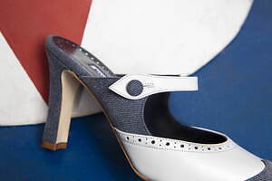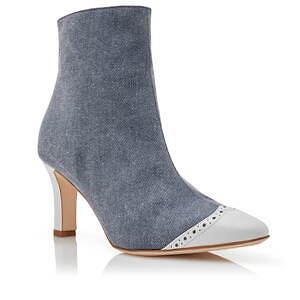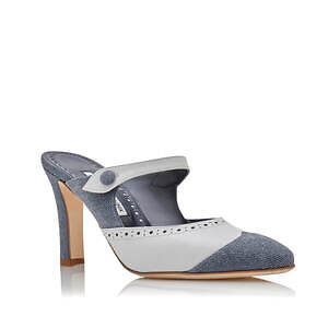 1993年にマノロ・ブラニクの友人であるジョン・ガリアーノの春夏コレクションのためにデザインされたミュール「AGATHA」は、軽快な春の装いにぴったりの1足だ。地中海のようなブルーデニムに、穴飾りを加えた白いカーフレザーを組み合わせ、リゾートの美しい海岸を表現。丸みを帯びたトウが、上品な足元を演出してくれる。