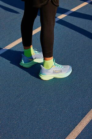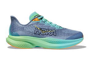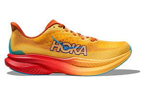「マッハ 6」は、ホカで人気のスピードモデル「マッハ(MACH)」をアップデートし、より反発性と推進力を高めたランニングシューズ。ミッドソールに反発性の高いスーパークリティカルフォームEVAを採用することで、よりスピードを追求した走りを可能にした。
