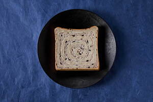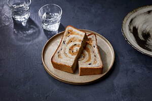 「黒龍酒造監修 大人のあん食パン」は、国産小麦に炊いた黒米を加えた生地に、大吟醸の酒粕と日本酒をプラス。香り高い白あんを、美しい渦模様に巻き込んでいる。