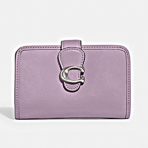 さらに、特徴的な“C”のハードウェアを配したレザーウォレットにも、パープル、ピンク、グリーンの爽やかな新色が登場。二つ折りのコンパクトなサイズながら、紙幣入れや、10個のカードスロット、ジップ付きの小銭入れなどを備えた実用的な内装も魅力だ。
