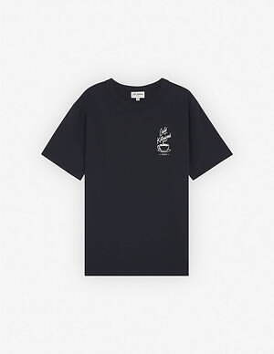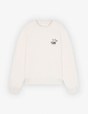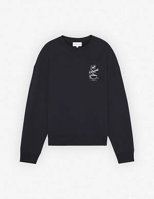 例えばTシャツやスウェットは、胸元のワンポイントが目を引くシンプルなデザイン。ホワイトは優雅な「バリスタ フォックス」を、ブラックは湯気のたつカップを描いている。