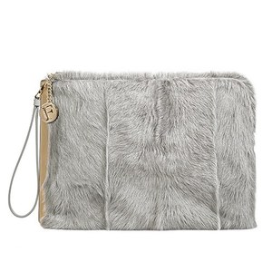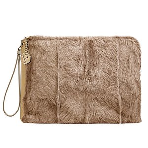 モード感満載のクラッチバッグ「ジェード(JADE)」はゴートファーにベーシックカラーを合わせ、存在感がありながらも上品な印象に仕上げている。