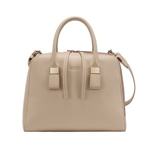 フルラの伝統と革新性を表現した実力派モデルの1つ「ツイッギー(TWIGGY)」はボストン型とトート型の2種類で展開されている。開閉口が斜めにデザインされていることで、より大きく開くことができる上、取り外し可能なショルダーストラップも付いていて、機能性は抜群。ゴールドのジップとハードウェアがアクセントだ。