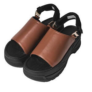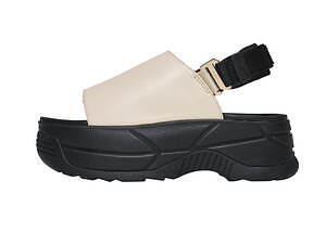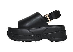 「バケイチャンキー」は、カジュアルなスポーツサンダルをベースに、洗練されたデザインにアレンジした厚底サンダルだ。アッパーには、微光沢PUレザーのワイドなワンストラップを使用。ヒールパーツの留め具にはゴールドをあしらい、リュクスな佇まいに華やかなアクセントを加えている。