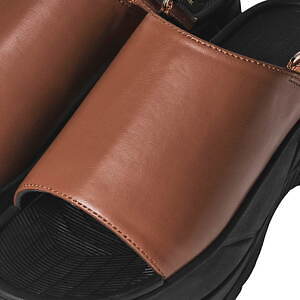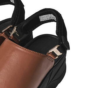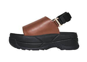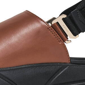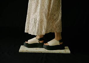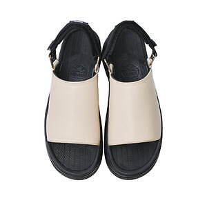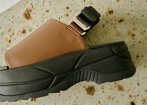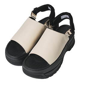 アッパーの裏地には、クッション性を高めるネオプレンを使用。ソールは6.5cmの厚底でスタイルアップも叶えつつ、歩行をサポートするロッカー構造を採用している。また、ヒールストラップを外せば、スライドタイプになる2WAY仕様なのも嬉しいポイントだ。