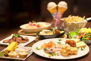 「初夏の梅づくしアフタヌーンティー&ハイティー」は、梅を使用したオードブルやデザートに加え、梅酒カクテルをはじめとした100種類以上のドリンク飲み放題がセットとなるアフタヌーンティー。デザートには新作「初夏の梅酒カクテルクリームソーダ」が用意されるなど、とことん梅の味わいを堪能できるメニューが勢揃いする。