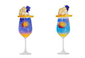 初夏の梅酒カクテルクリームソーダ ヴィーナスベルト、初夏の梅酒カクテルクリームソーダ ブルーモーメント