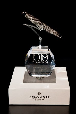 ホワイトゴールドと合計850個以上のダイヤモンドがあしらわれた「1010 Diamonds」は、スイスの高級腕時計産業へのオマージュとして創られたもの。世界最高峰の彫金師や宝石職人、そしてカランダッシュのマスタークラフトマンによって、芸術的にも技術的にも最高級時計のムーブメントを、1本の万年筆にとじこめた。