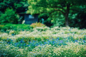 また、「四季の庭-よろこびの庭-」では、ジャーマンカモミールと青色に色づくコーンフラワーの段々畑を楽しめる。