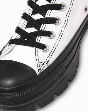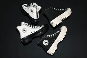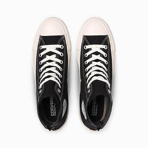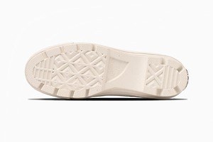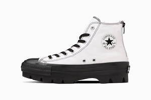 「オールスター アール チャンク バックジップ HI」のベースとなるのは、履き心地とクラシックなデザインをアップデートした「オールスター アール(ALL STAR (R))」。踵ジッパー仕様のアッパーと、凸凹でアーチを描いた曲線がポイントの厚底ソールを合わせた、直営店限定スニーカーとなっている。