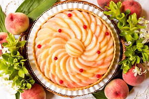 ・「桃とレモンバーベナのタルト」ピース 1,069円、ホール(25cm) 10,692円