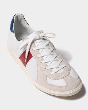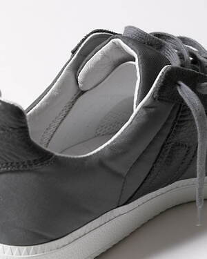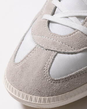 コラボレーションスニーカーのベースとなるのは、1980年代にかけて西ドイツ軍で採用されていたトレーニングシューズをアップデートしたスニーカー。そこに、ナイロンとレザーを組み合わせた“異素材”のアッパーを採用している。