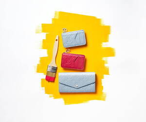 フラップ開閉式のミニウォレット「ポルトモネ・ロザリ」や長財布「ジッピー・ウォレット」が、鮮やかなレッド系、軽やかなブルー系、エネルギッシュなイエロー系の新3色を纏ってお目見え。エンボス加工で施されたモノグラム・パターンを、カラフルな色合いで楽しむことができる。