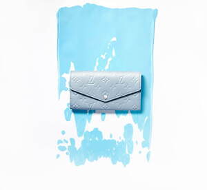 また、封筒型のフラップが特徴的な長財布「ポルトフォイユ・サラ NM」は、涼しげなブルーの色合いで用意。2つのマチ付きコンパートメントやファスナー付きのコインポケットに加え、計12個のカードスロットを備え、実用性に優れたウォレットに仕上げた。