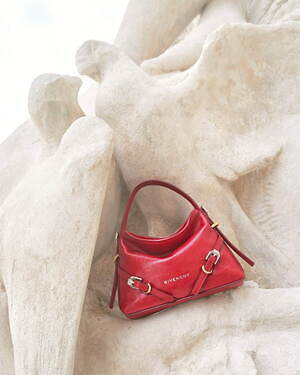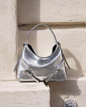 フランス語で“いたずらっ子”を意味するスラングから名付けられた「ヴォワイユー」は、2023年の発売以来、瞬く間に人気を博したジバンシィのアイコンバッグ。レディなハンドバッグにバイカーエッセンスをプラスしているのが特徴で、上品ながらもカジュアルな“V字型”のホーボー・シルエットを採用している。