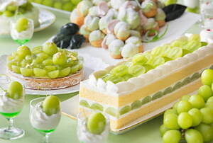 シャインマスカットショートケーキ / シャインマスカットロールケーキ / シャルロットシャインマスカット / シャインマスカットレアチーズ / フィユテフリュイルージュ / シャインマスカットタルト / シャインマスカットシュークリームなど約12種)