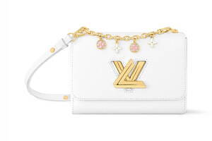 エナメル製のモノグラム・フラワーのチャームを連ねたチェーン付きの「ツイスト MM」もラインナップ。ショルダーバッグとしてはもちろん、クロスバッグとしても楽しめる2WAY仕様となっている。