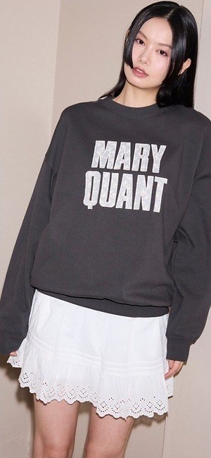 ロゴスウェットには、レースで表現した“MARY QUANT”ロゴをオン。長すぎない着丈で、ゆとりのあるルーズなシルエットに仕上げた。裏起毛素材を使用しているので、秋冬にぴったりな1着となっている。左袖口に配したデイジー刺繍もポイントだ。